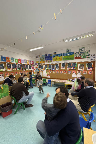 Na semana passada celebrou-se o Dia do Pai no Externato As Descobertas. Os meninos dos grupos do pré-escolar tiveram um momento de convívio com os seus pais: fizeram exercícios com eles no ginásio, cantaram-lhes canções e ofereceram-lhes lembranças deste dia.